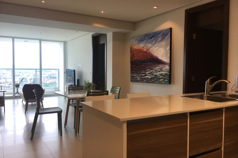 Espectacular apartamento en ciudad de Panamá en el edificio Parkside. Cuenta con una excelente ubicación en la zona Costa del Este, el apartamento es en el piso 32 y tiene vista al parque de Costa del Este y al mar. El apto cuenta con 95 m2, 1 habitación, 1,5 baños y está completamente amoblado.