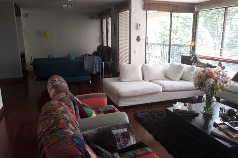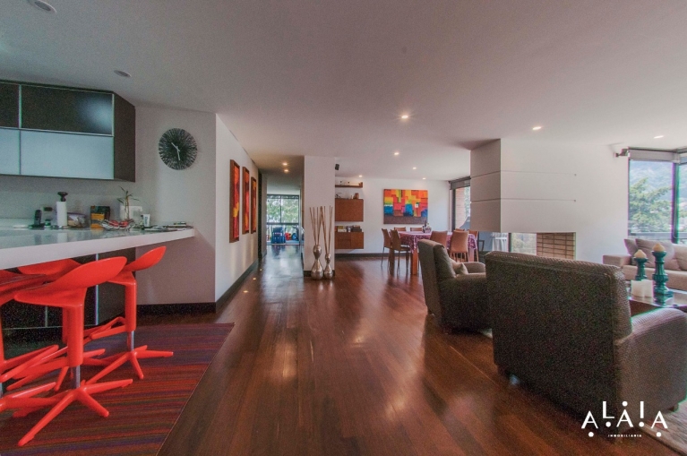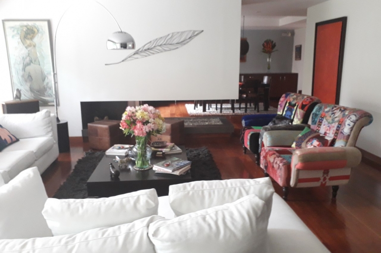 La Cabrera venta y arriendo, amplio apartamento en piso alto, con un área de 257 Mts + 88.46 de terraza  que dan al área de comedor y habitaciones + balcón. 3 habitaciones con baño c/u, cocina cerrada, estudio, cuarto y baño de servicio, 2 garajes en línea y deposito.