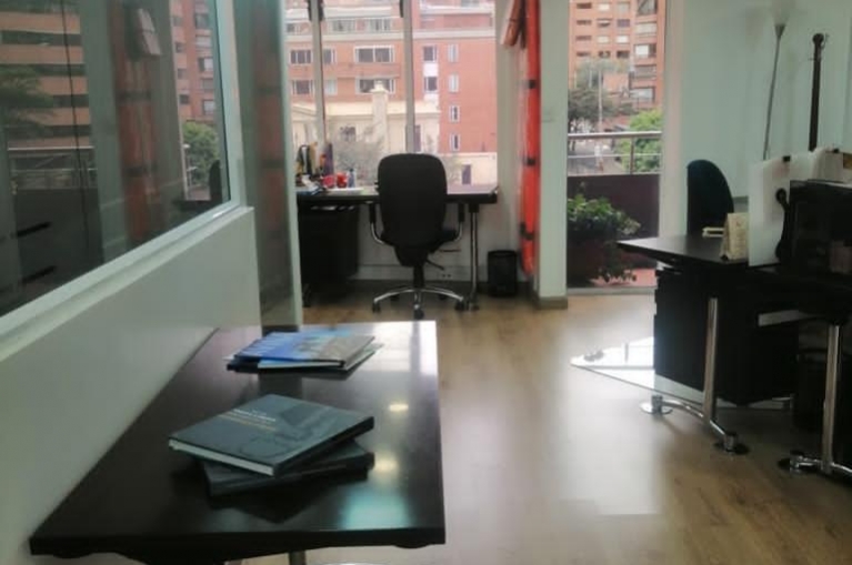 Arriendo oficina remodelada, ubicada en el centro financiero mas importante de Bogotá , piso 5 exterior, con vista y muy iluminada, edificio con vigilancia las 24 horas, recepción, ascensores. Tiene 166 mts, 2 baños privados, cocineta, divisiones, balcón, Piso laminado, cortinas y cableado de red, 2 garajes,